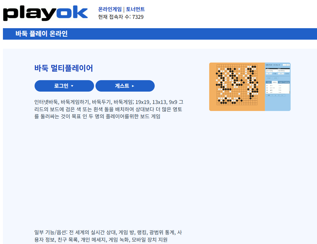 회원 가입없이 웹에서 바로 바둑을 즐기기 좋은 무료 사이트로, 초보자에게 적합합니다. 단, 고수 비율은 상대적으로 적은 편입니다.