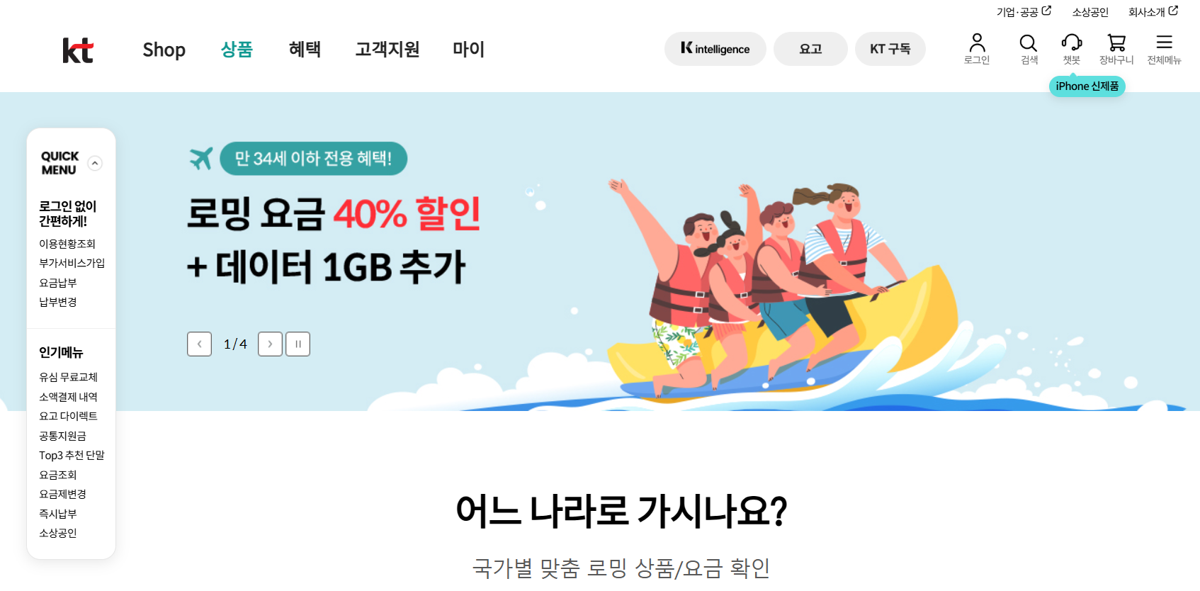 KT 해외 로밍 요금제 종류